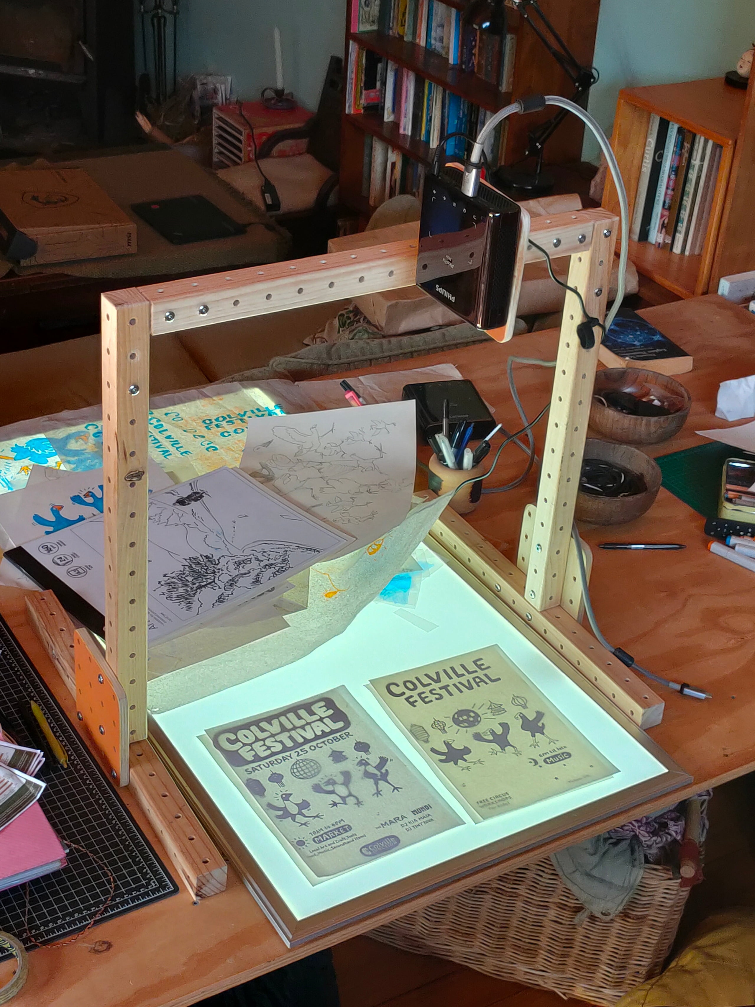 used in combination with a 1200x600 ceiling light “lightbox” for tracing/overlays