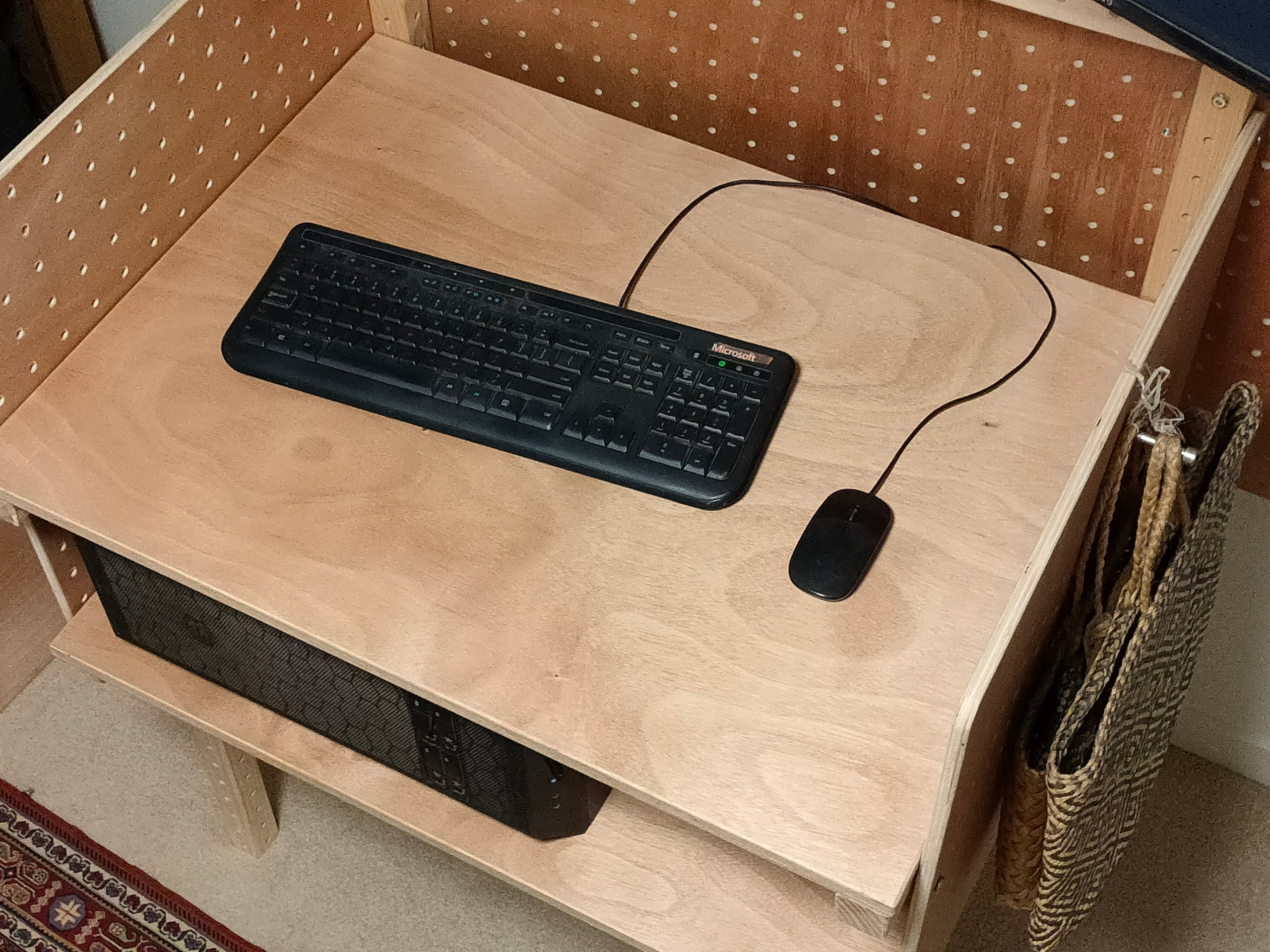 The final design wouldn’t have the ends of the beams showing on the desktop panel. I just didn’t want to cut any beams just then.