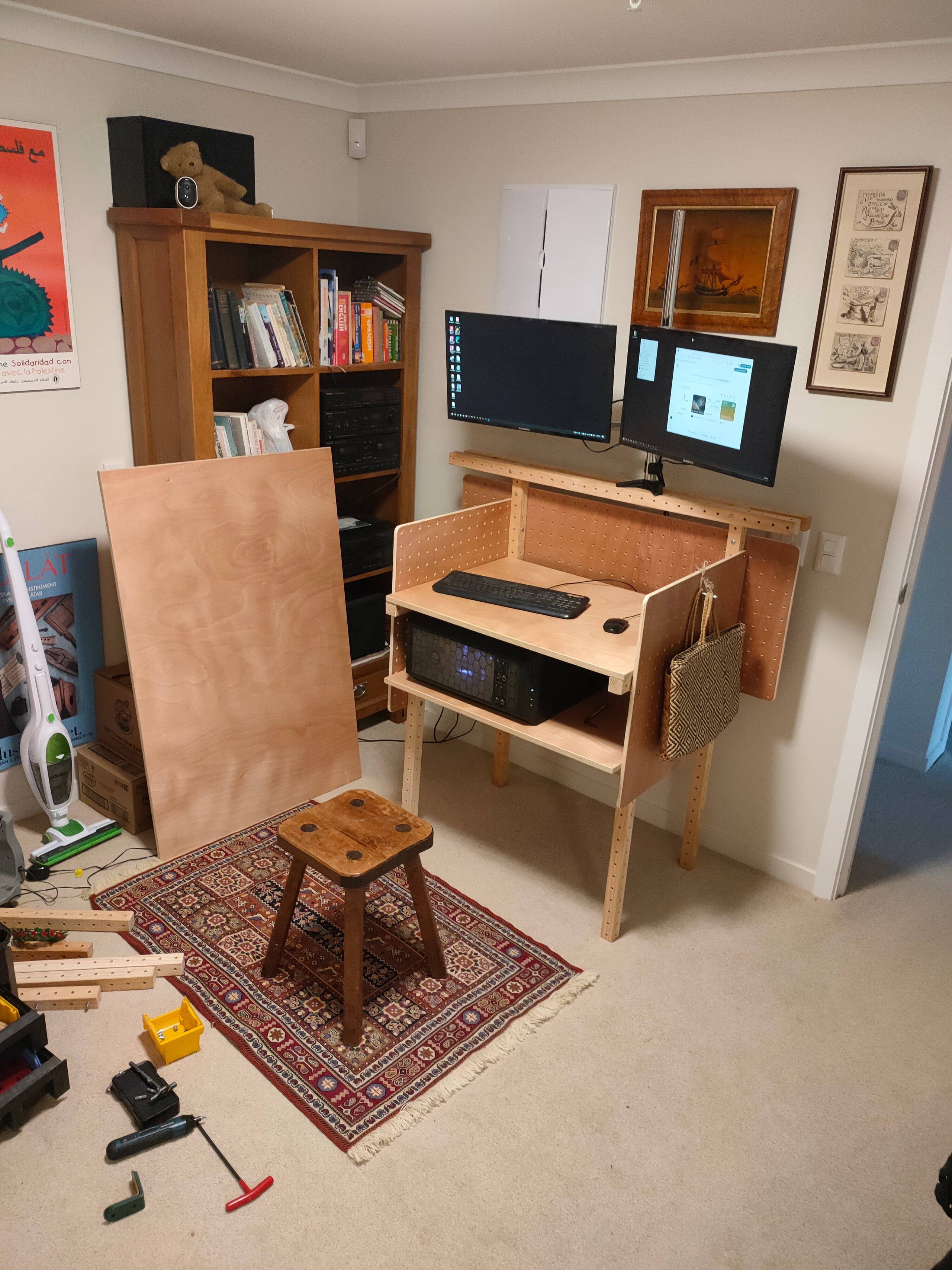 Had to go to Wellington for a bit and took down some desk components to make a desk. I’ve been testing out the best way to coat these panels and also the rounded corners and edges (sanding finish, radius etc)